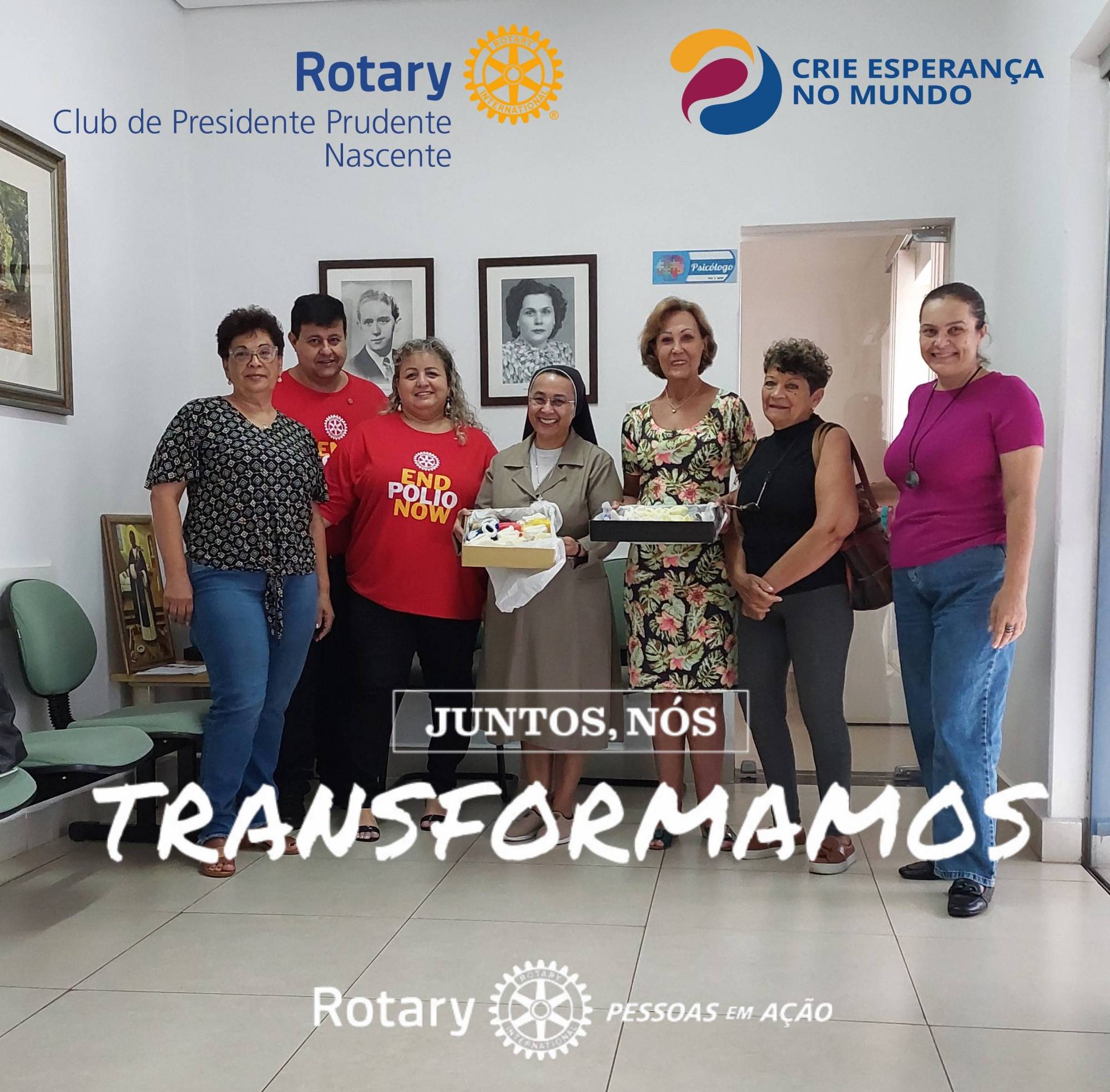 Companheiros do Rotary Club de Presidente Prudente Nascente em 01/08/2023, visitaram o Centro Educacional Infantil Walter Figueiredo (CEI) e entregaram sapatinhos de lã. Durante a visita, os companheiros foram acompanhados e recebidos calorosamente pela Irmã Penha Barros, pela Sra. Edna Marques voluntária e pelos funcionários do centro.