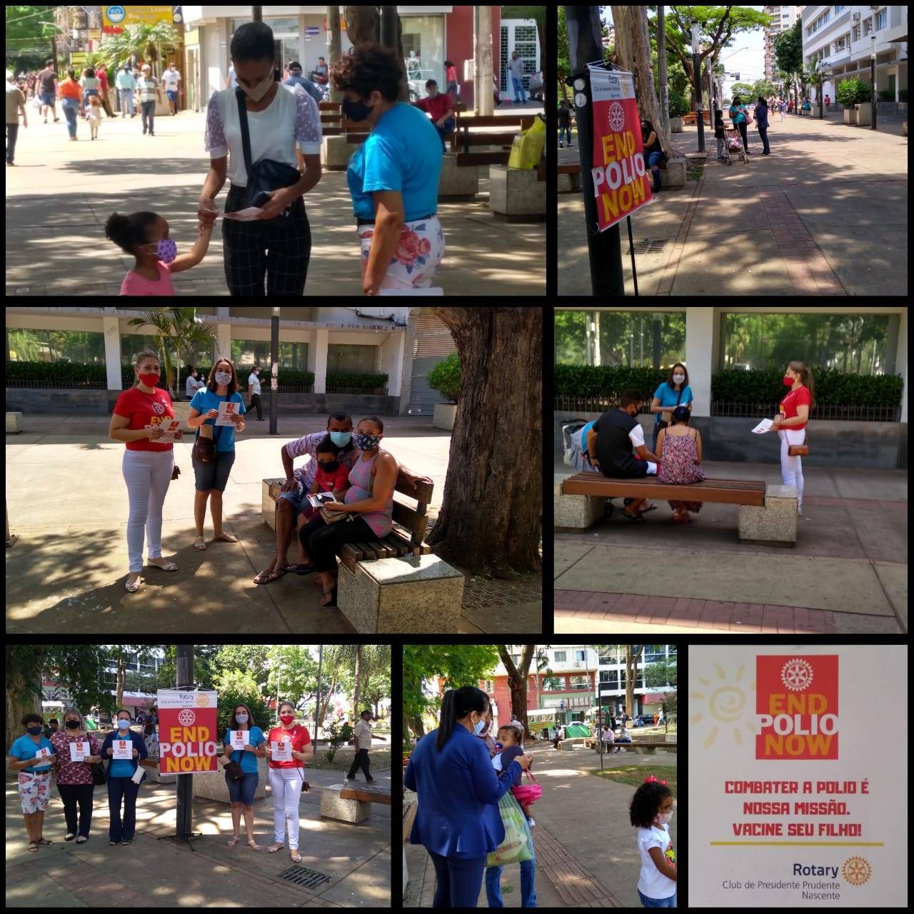 Neste Sábado dia 17 de outubro de 2020, o Rotary Club de Presidente Prudente Nascente, participou divulgando e conscientizando da importância da vacinação no “Dia D da Multivacinação”. Esta é Campanha de Vacinação contra a poliomielite e multivacinação, foi realizada no Calçadão de Presidente Prudente, das 10:00hs as 11:00hs. Todos Rotarianos usando máscaras, álcool gel e distanciamento de segurança, seguindo as recomendações de saúde devido ao Covid-19, entramos em ação para eliminar a poliomielite globalmente. #WorldPolioDay #endpolio: endpol.io/wpd-pt